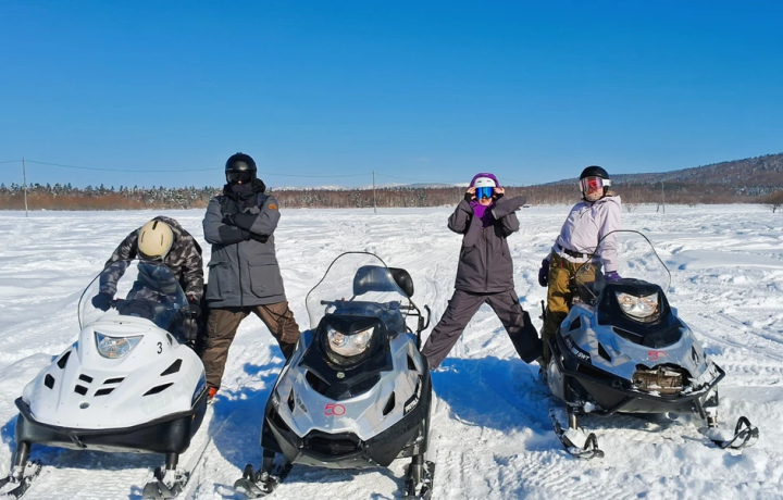 Эта активная поездка — идеальный способ погрузиться в суровую красоту острова. Вас ждёт поездка на снегоходах к подножию одной из самых высоких вершин южного Сахалина с неожиданной кульминацией — посещением забытого аэродрома. День будет наполнен контрастами: в этих местах природа встречается со следами истории, а снежная тишина — с рёвом двигателей.