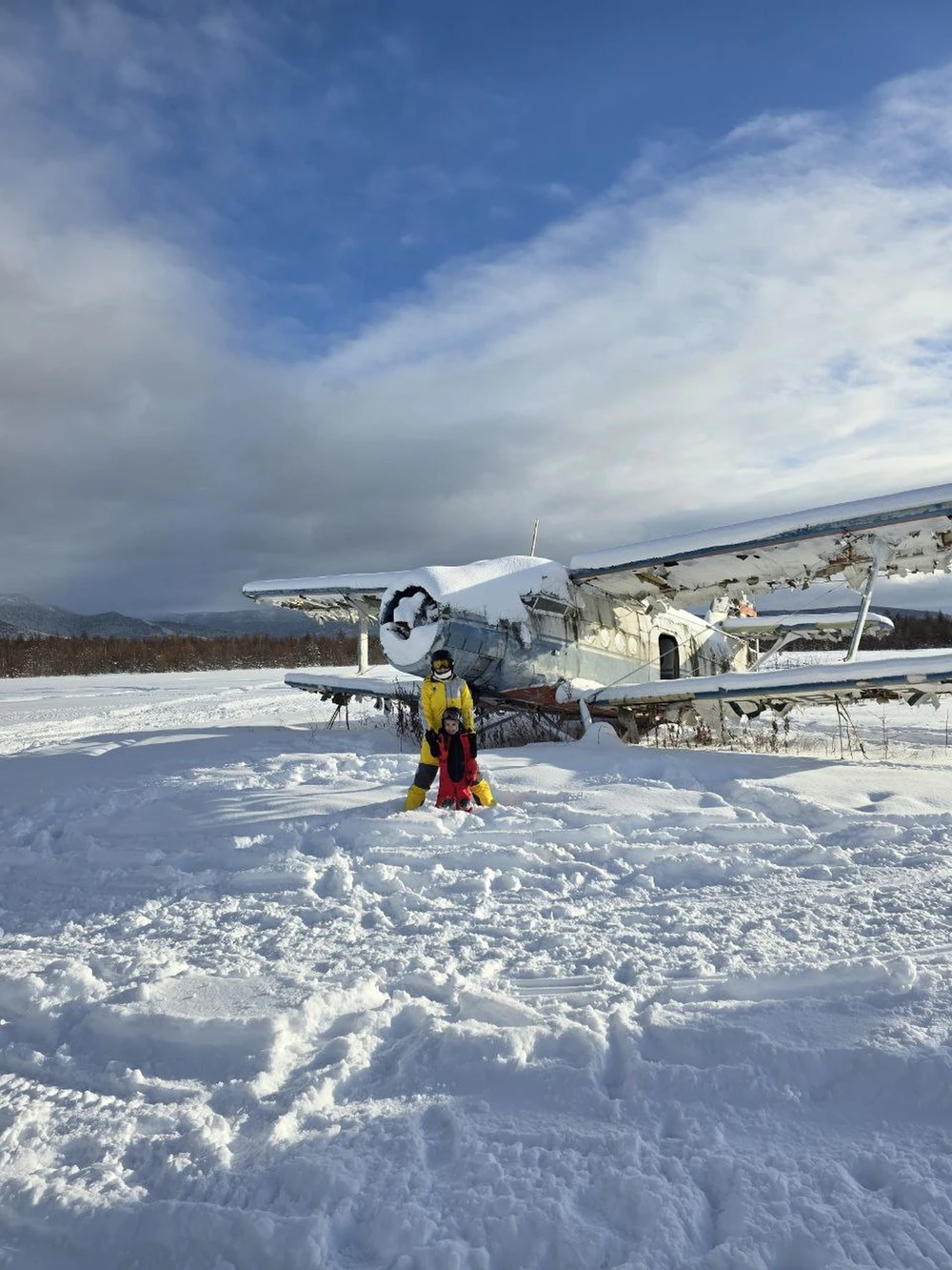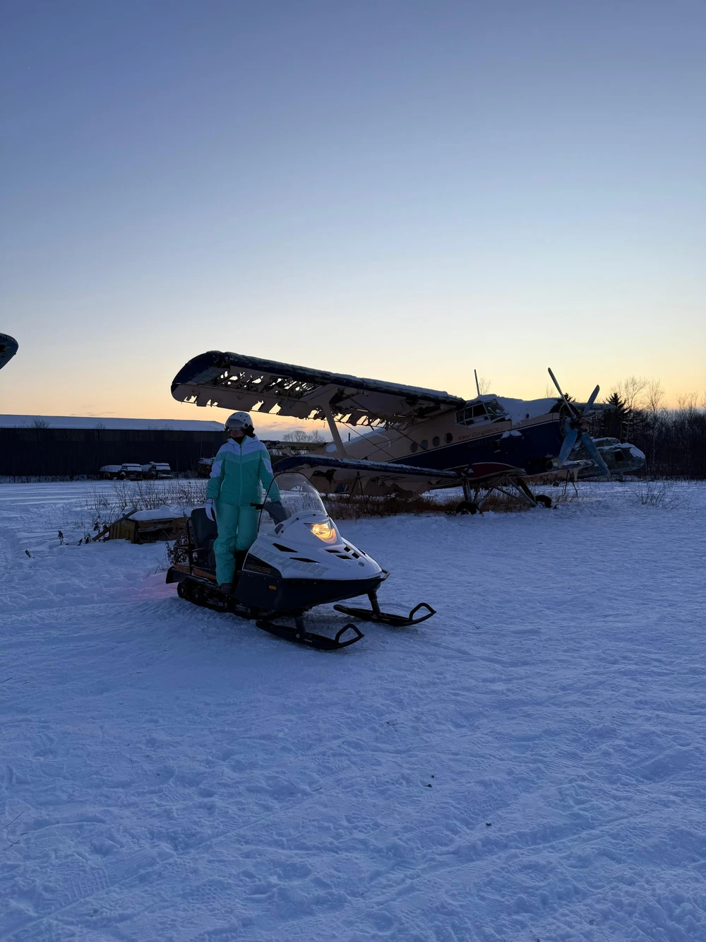Финальная точка маршрута — старый аэродром. Среди белого безмолвия застыли ветераны неба: самолёты и вертолёты, чья служба давно окончена. Вы сможете подойти вплотную, рассмотреть детали фюзеляжей и сделать выразительные фотографии. Контраст рыжего металла, голубого снега и бескрайнего неба создаёт сюрреалистичную и мощную картину.