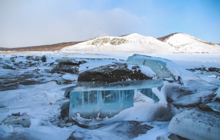 15:30 — выезд обратно. По пути — остановка на Янтарном пляже, где можно найти сахалинский янтарь. Ориентировочное время возвращения в город — 18:30