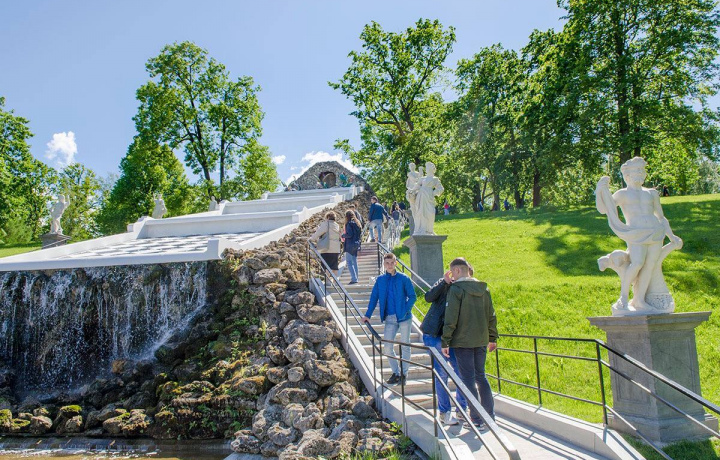 • После трассовой экскурсии и прогулки по Нижнему парку Петергофа, на ваш выбор, экскурсия в парк Александрия на трамвайчике или посещение парка Знаменка.