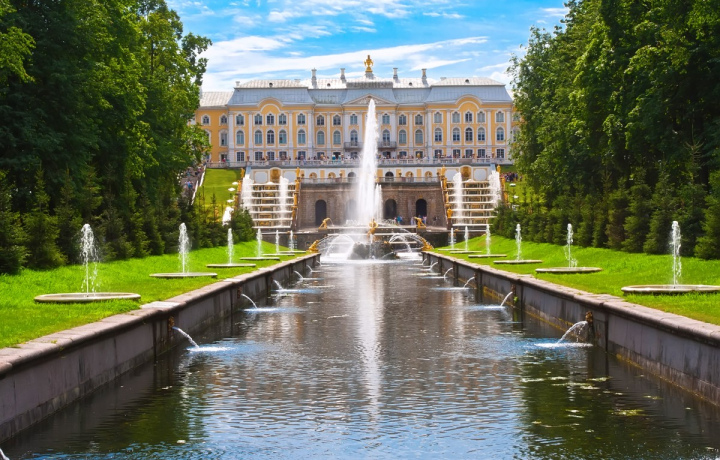 Петергоф построили на берегу Финского залива по приказу Петра I. Он сразу стал главной императорской резиденцией и символом выхода Российской державы к Балтийскому морю. В группе до 50 человек с гидом вы посетите «Парк фонтанов», который принёс мировую славу всему комплексу. Увидите павильоны, малые дворцы и вольеры, сохранившие дух Петровской эпохи. И осмотрите интерьеры главного дворца.