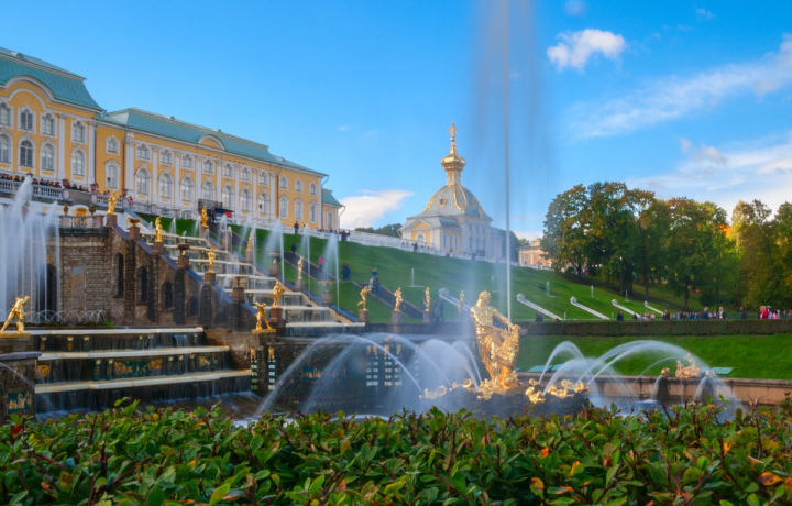 На комфортабельном автобусе вы поедете из Санкт-Петербурга в Петергоф. В загородной резиденции отправитесь в Нижний парк — туда, где находится большая часть фонтанов. Они считаются самым роскошным и изысканным подобным комплексом в мире. Вы услышите истории о петровских дворцах — от императорской эпохи до настоящего времени.