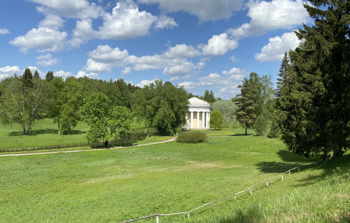 На комфортабельном минивэне мы отправимся на юго-восток Петербурга, где и расположен Павловск. Прогуляемся по пейзажному парку площадью около 600 гектаров, полюбуемся его павильонами и прудами. А наши коллеги, музейные гиды, проведут экскурсию по залам дворца. Вы увидите библиотеку, домашнюю церковь, коллекцию картин и гобеленов, а также произведения прикладного искусства, выполненные хозяйкой резиденции Марией Фёдоровной.