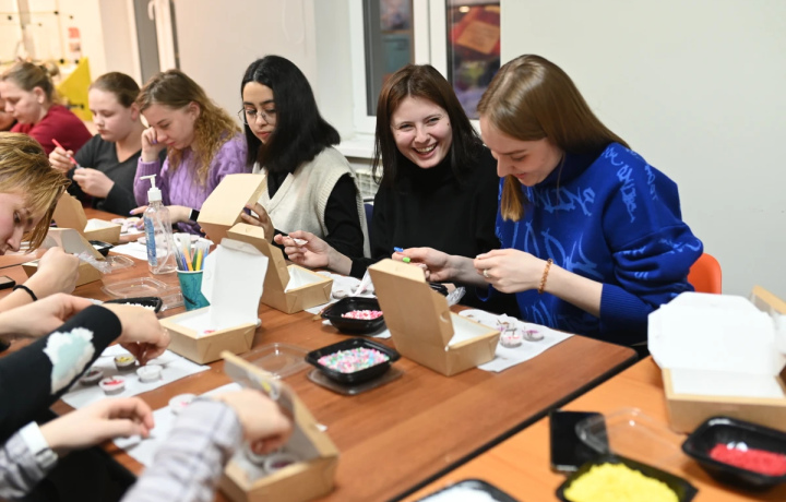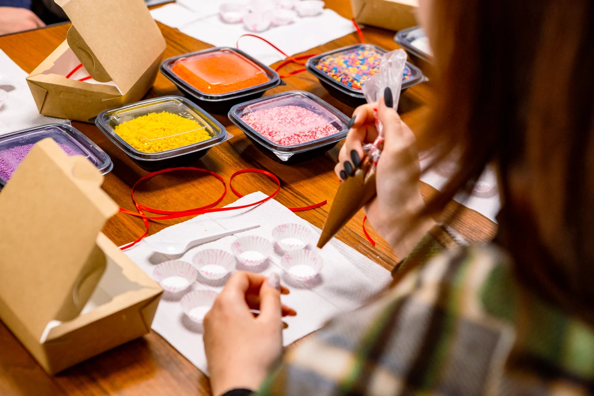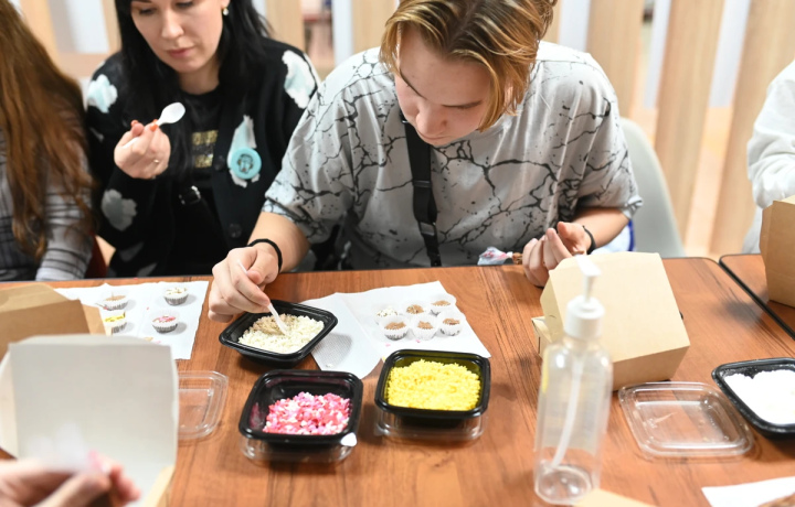 Когда сладкий шедевр будет готов, вы положите его в подарочную коробку, красиво подпишете, перевяжете лентой и заберёте с собой. Подарите кому-то или себе — на ваш выбор!