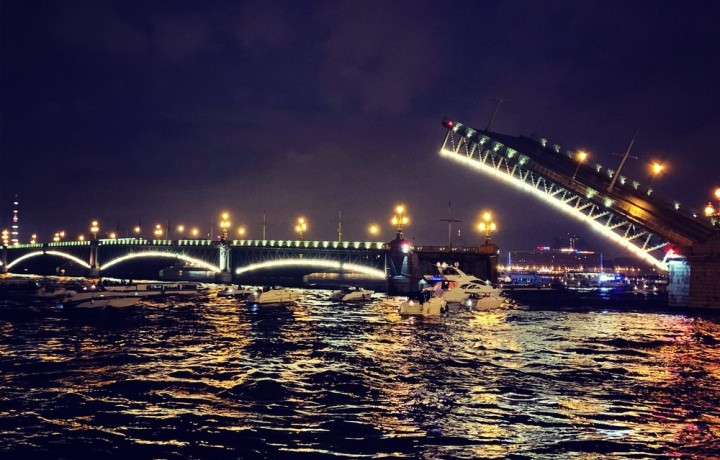 На наших глазах распахнут свои пролёты Дворцовый и Благовещенский мосты, и мы промчимся под ними, спеша к причалу, пока в акваторию Невы будут заходить тяжёлые сухогрузы.