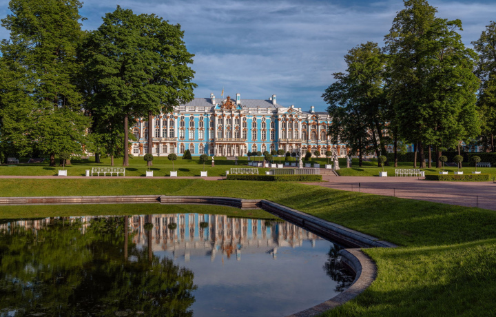 Наш путь лежит в Пушкин. Здесь расположилась резиденция Царское Село со знаменитым Екатерининским дворцом — рассмотрим роскошные залы комплекса и познакомимся с его историей. Непременно заглянем и в воссозданную Янтарную комнату (или как ее называют иначе — «восьмое чудо света»).