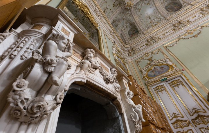 Прогулка по роскошному зданию Ново-Михайловского дворца и осмотр его убранства: парадной лестницы, приёмной и кабинета великого князя Николая Михайловича, а также два зала — Зеленый, предназначавшийся для музыки, и Белый, который использовали для танцев.