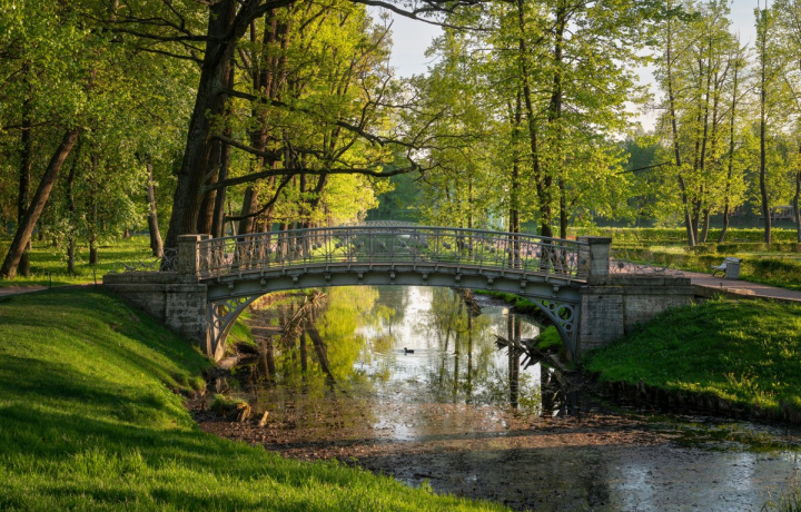 Прогулка по парку — путешествие вокруг большого живописного озера, а вернее, вокруг системы озёр. Вы увидите Берёзовый домик и павильон Венеры, Чесменский обелиск, Горбатый и Большой Каменный мосты. А в глубине парка спряталась Дворцовая ферма, где содержатся не только куры, кролики и козы, но и страусы.
