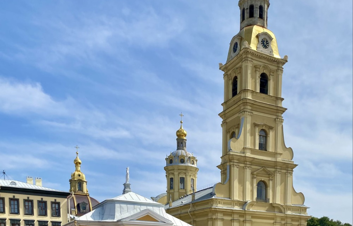В центре крепости — собор. Тут захоронены члены императорской семьи — от основателя города Петра I до последнего правителя империи Николая II. Мы расскажем, в честь кого освящён собор и какова высота его колокольни.