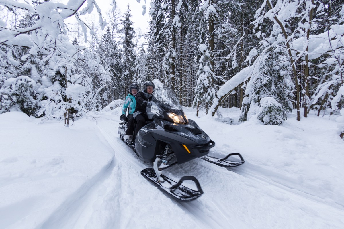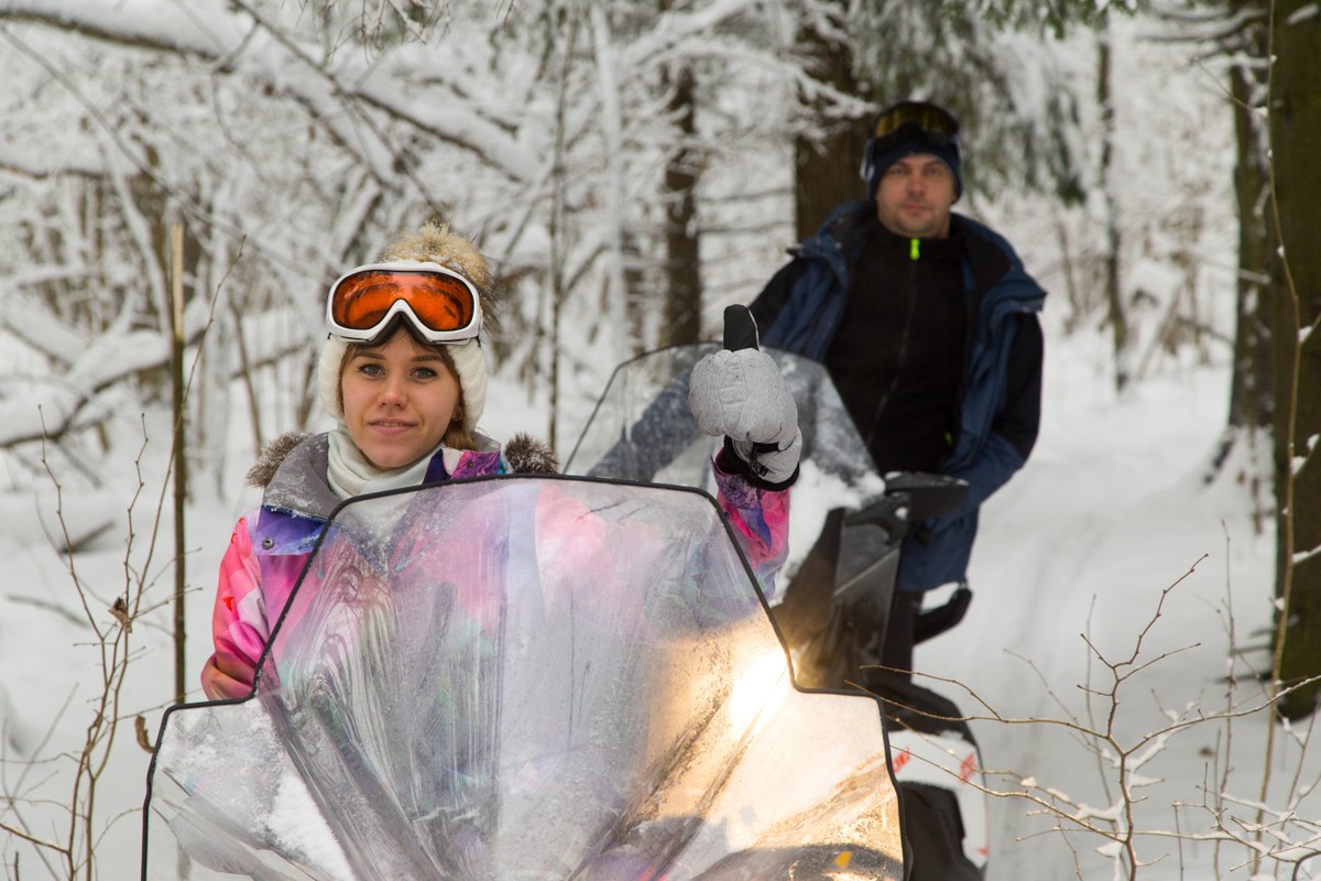 Затем вас ждут насыщенные 30 км по лесному массиву с подъёмами и спусками, маневрированием между заснеженными деревьями и разгонами на открытых участках по полю. Вы почувствуете и драйв, и скорость, и удовольствие от управления мощной снежной машиной. У вас будет время для фотостопов в лесу и возможность поменяться местами.