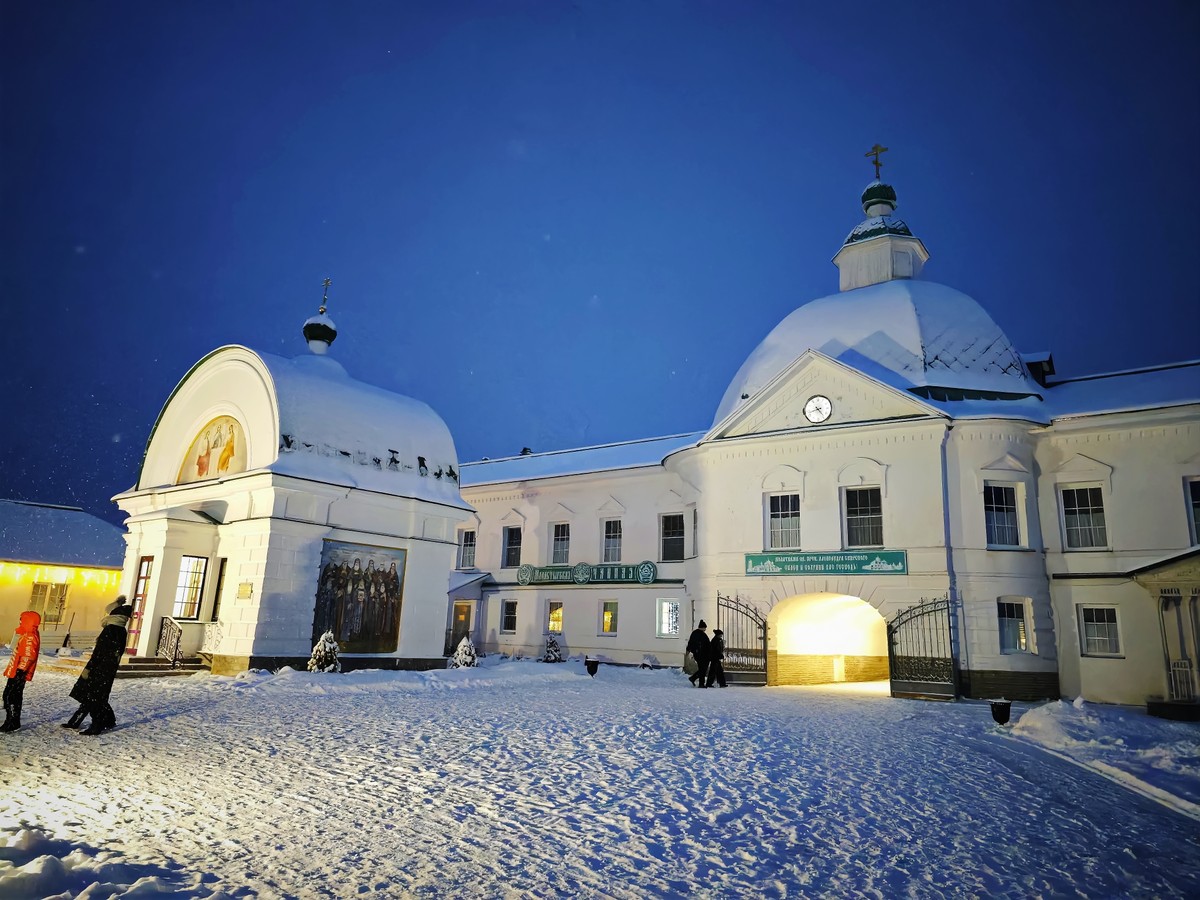 Здесь мы осмотрим снаружи соборы 17 века постройки и зайдём в трапезную 16 века, где увидим место явления Богородицы Александру Свирскому. В трапезной можно будет пообедать.