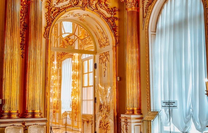 Екатерининский дворец. Он был официальной летней резиденцией трёх монархов: Екатерины I, Елизаветы Петровны и Екатерины II. Вы увидите Большой зал площадью более 800 кв. метров, где проводились официальные приемы, балы и другие торжества. Пройдёте по «золотой анфиладе» и посетите знаменитую Янтарную комнату.
