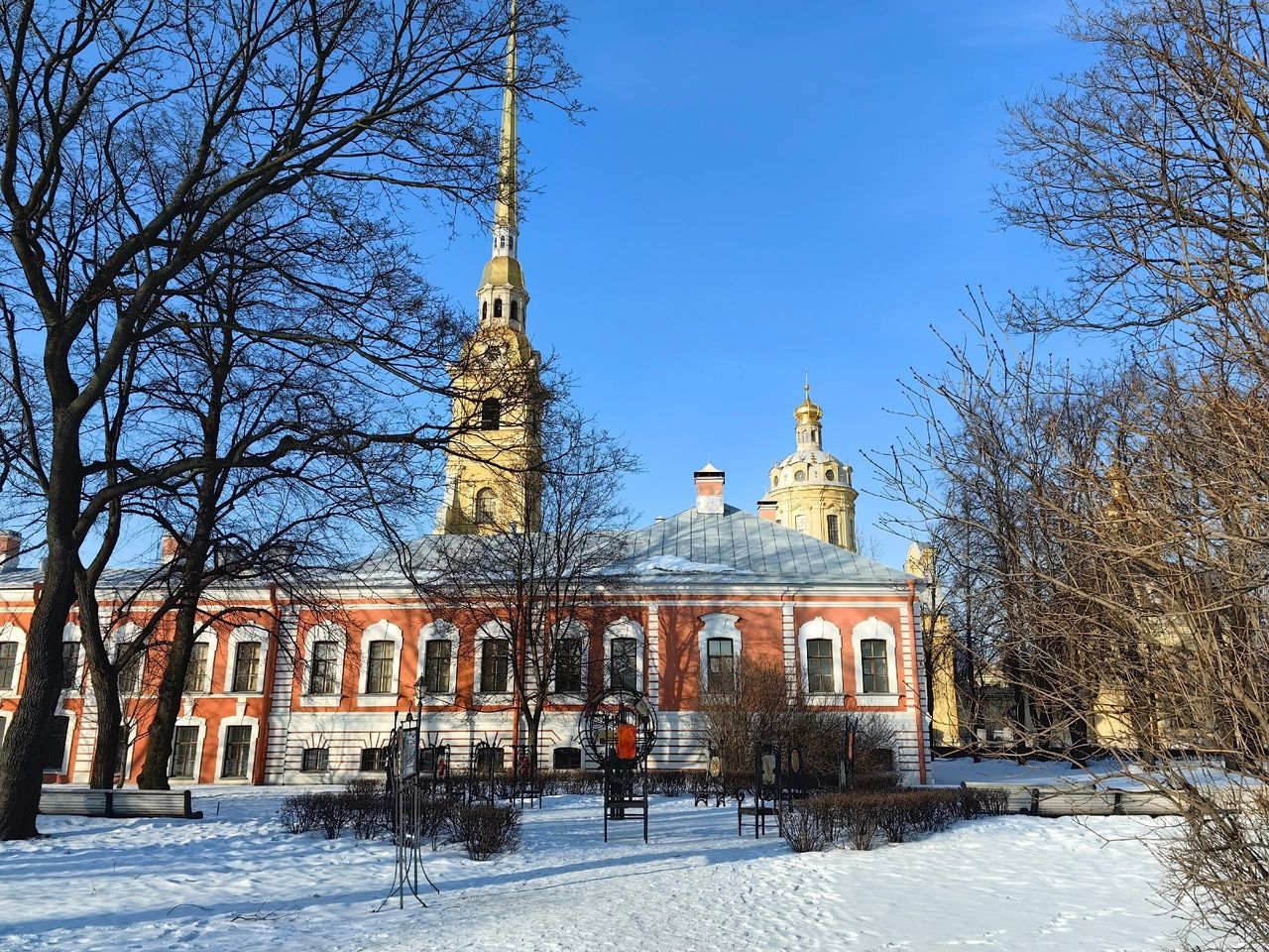 Посетим Петропавловский собор — усыпальницу династии Романовых и бывшую тюрьму в Трубецком бастионе.