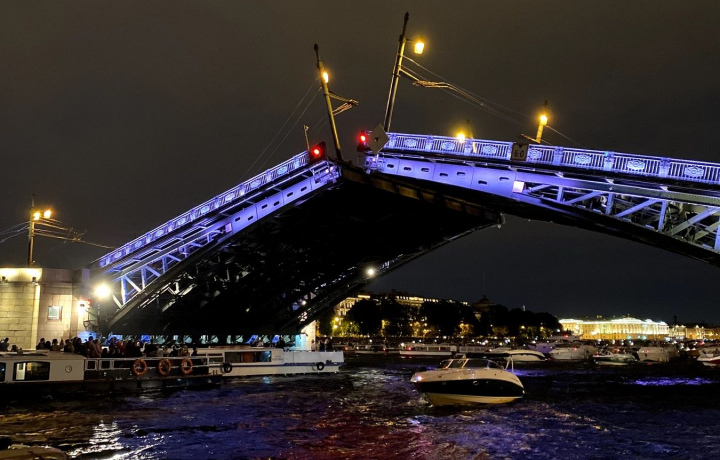 Еще одна ассоциация с Санкт-Петербургом — это белые ночи. Начинается это уникальное природное явление в конце мая и длится, как правило, до начала июля. В это время в городе стираются границы между днем и ночью. Объединить просмотр разводки мостов с борта теплохода и период белых ночей — превосходное решение для тех, кто планирует быть в Петербурге в это время.