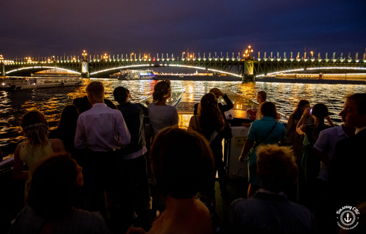 Одна из первых ассоциаций при упоминании Петербурга — это разводные мосты. Многотонные конструкции, отблески фонарей на водной глади, сияющие набережные и фасады домов. Все вокруг будто замирает, поддавшись чарам ночного города. Этот маршрут специально разработан для наблюдения за разведением мостов, очень красиво и романтично. Вы увидите грандиозное зрелище в первых рядах.