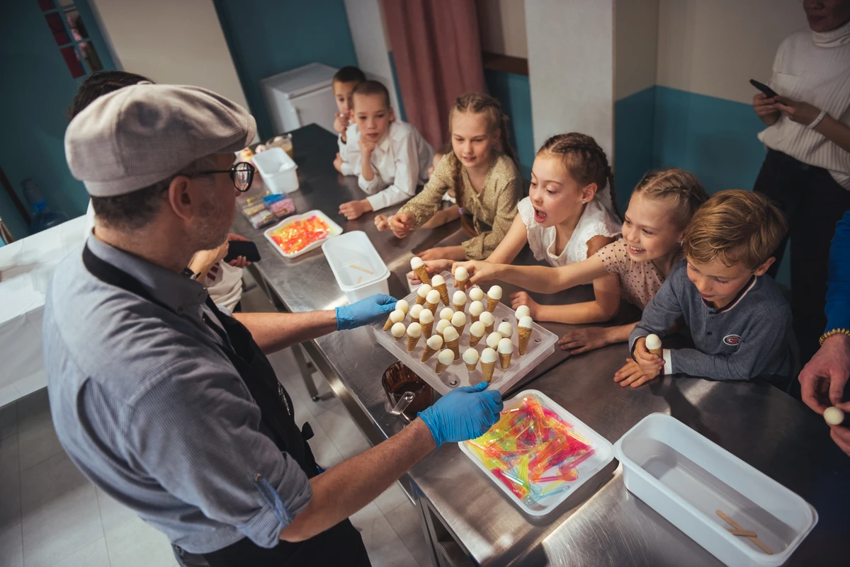 приготовлении, послушали любопытные истории о мороженом. Ребенок в восторге.