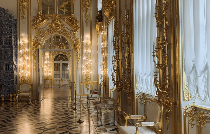 По дороге в город Пушкин гид расскажет вам о трагической судьбе государственных музеев-заповедников в годы войны — о подвиге хранителей, об уничтожении культурных ценностей, о восстановлении дворцов из пепла. А по приезде в Екатерининском дворце вы сможете почувствовать себя царскими особами — пройдете парадной анфиладой, увидите «золотую бесконечность», Янтарную комнату и парадные интерьеры, где давали обеды, балы и принимали гостей члены династии Романовых.
