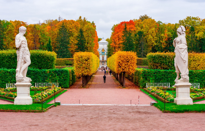 По прибытии нас ждет прогулка по Екатерининскому парку и уютному Собственному саду. Вы увидите флигель, пристроенный к Большому дворцу, который некогда соединялся с павильоном «Холодная баня» при помощи висячего сада. Здесь можно вдоволь насладиться природой, видами и атмосферой царского покоя. Но главная цель нашего визита — личные покои Екатерины II, которые стали доступны после долгой и кропотливой реставрации. Это подлинное путешествие во вкусы, привычки и эстетику великой императрицы.