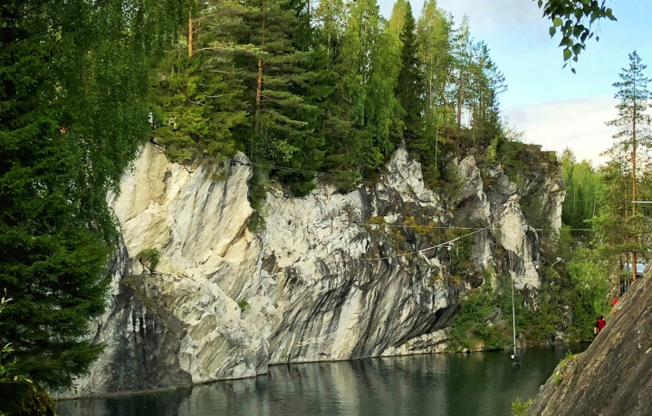 Горный парк «Рускеала». Искусственно затопленная территория карьера восхищает: мраморные утёсы, изумрудная гладь озера и душистые сосны.