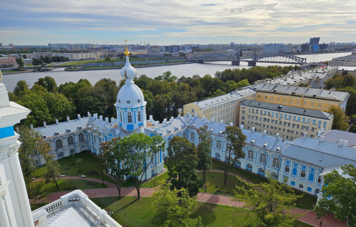 Поднявшись на звонницу Смольного собора, вы окажетесь на самой высокой смотровой площадке Петербурга. Отсюда историческая часть города откроется перед вами с совершенно другого ракурса: вы увидите разлив Невы, набережную и архитектурный ансамбль Смольного. Осматривать окрестности можно в бинокль, установленный наверху, а об окружающих достопримечательностях из колонок рассказывает аудиогид.