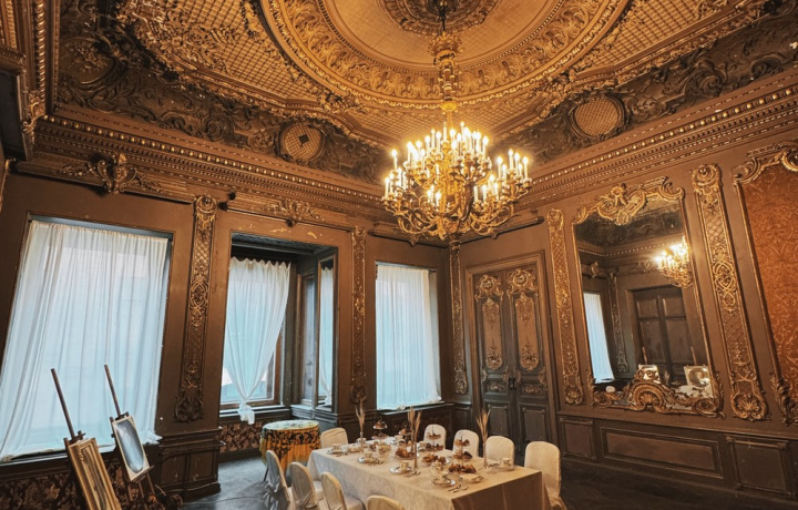 Анфилада залов, где время остановилось в 1917 году. Вы увидите великолепную эклектику интерьеров: изысканный Белый зал в стиле Людовика XV, дубовую столовую с потайными дверями, Мавританскую курительную комнату.