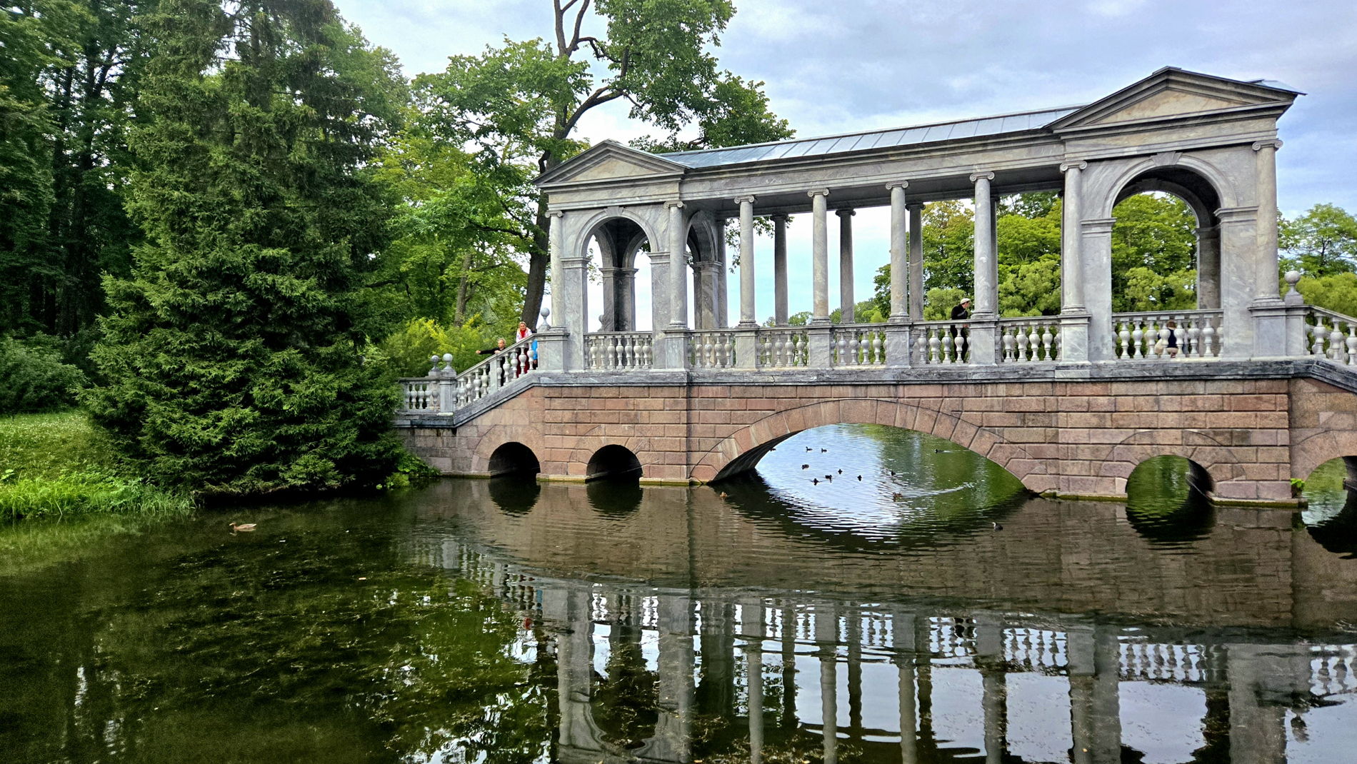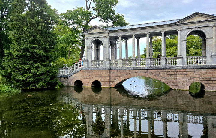 Затем мы плавно перейдём в соседний Александровский парк — уголок Царского Села с особой романтичной атмосферой. Здесь, среди живописных прудов и извилистых аллей, возвышаются древние руины и необычные павильоны. Вы пройдёте мимо Китайской деревни и руин Китайского театра, подниметесь на Крестовый (горбатый) мост — одну из самых фотогеничных точек парка, увидите Белую башню и стилизованный под средневековый замок Арсенал, а также Чесменскую колонну. Новый сад, примыкающий к Екатерининскому парку, органично связует оба пространства, делая прогулку цельной и разнообразной.