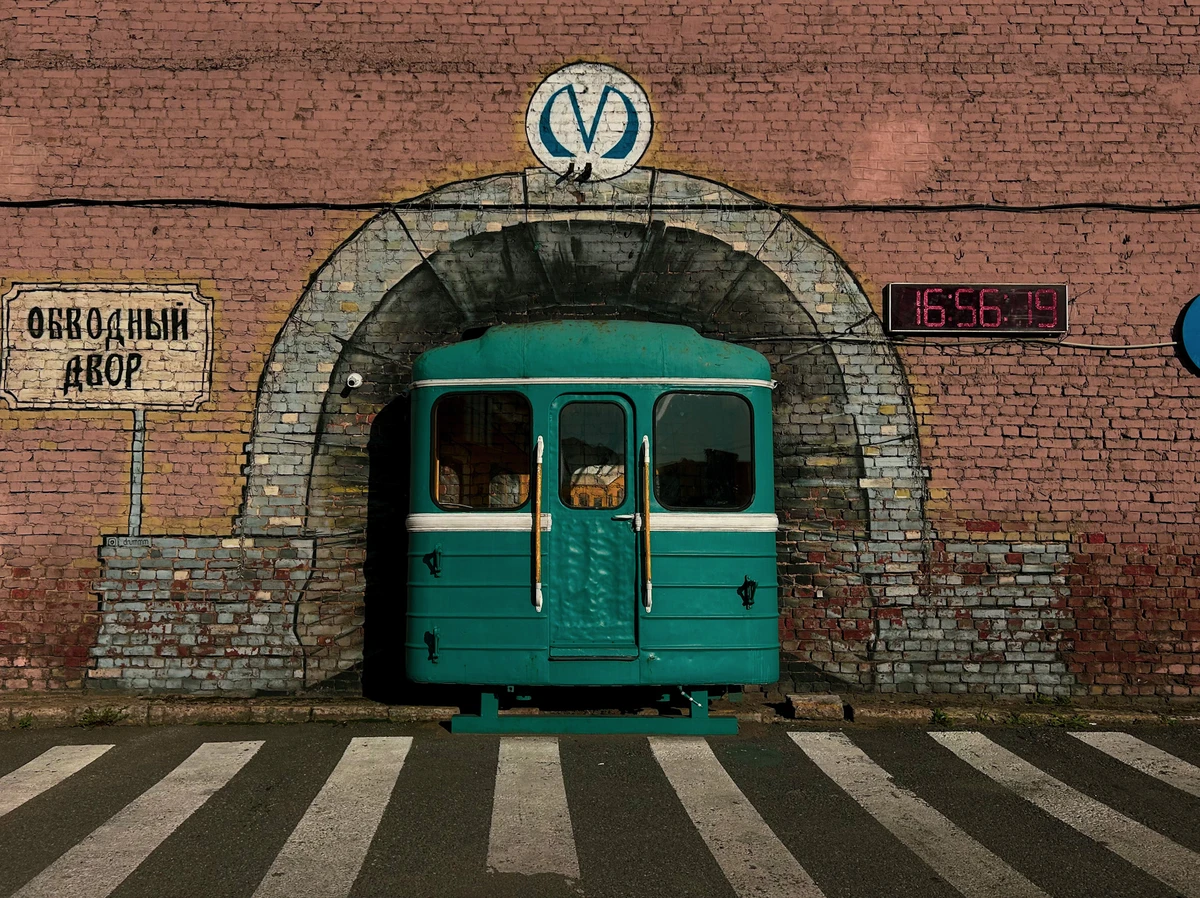 Бульвар Циолковского, бывшая река Таракановка — место скопления сурового быта рабочих, покрытого петербургским смогом. Попробуете отыскать здесь послание о транспорте будущего?