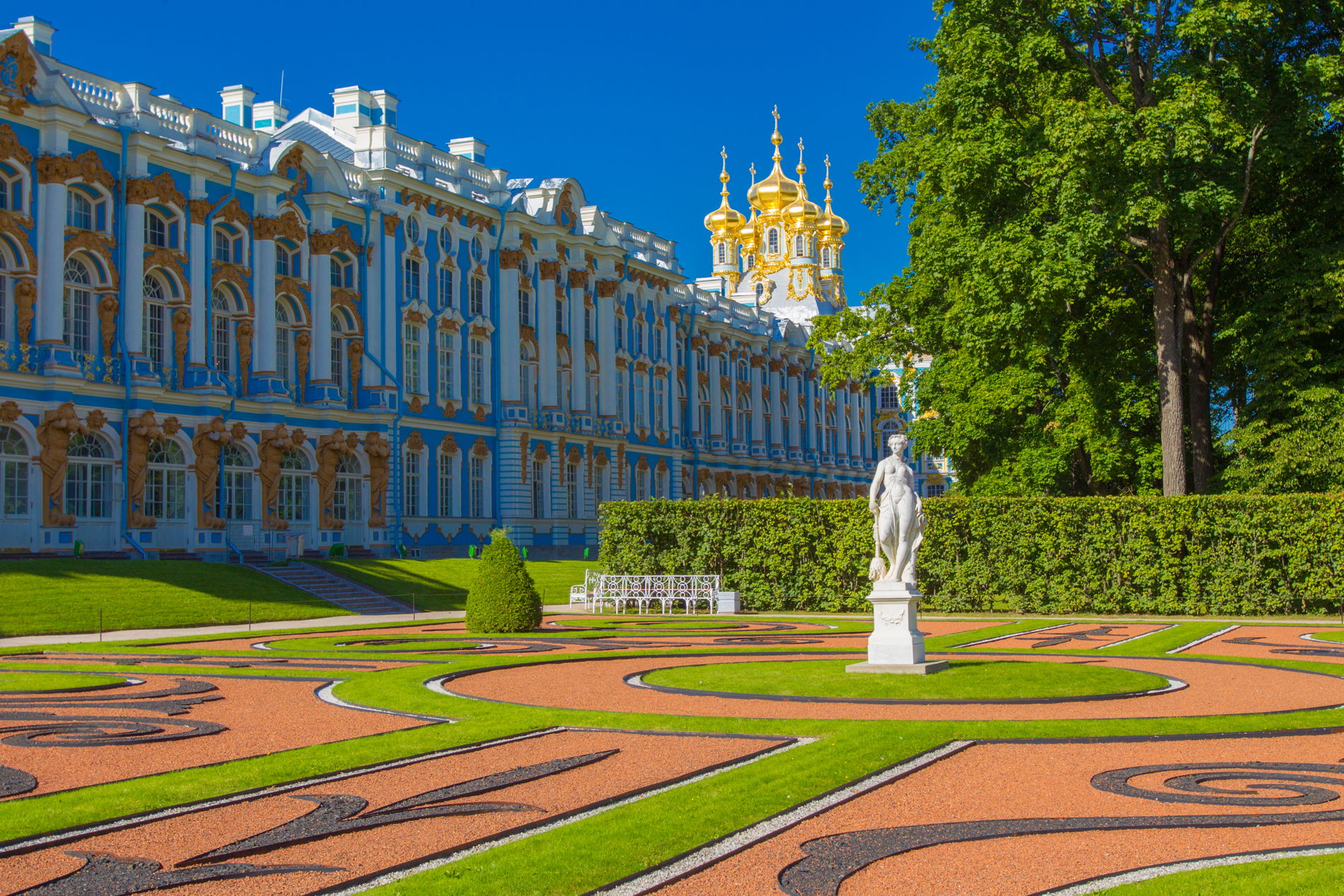 Екатерининский парк Царского Села — место, которое нужно посетить хотя бы раз в жизни. Эту летнюю резиденцию любили все русские императоры и постоянно старались ее улучшить, украсить в соответствии с модными течениями своего времени. В результате получилось невероятно красивое место, где на относительно небольшой площади среди цветов и деревьев разместились