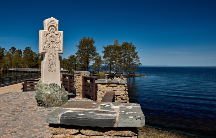 Вы отправитесь по деревянным мостам к Никольскому скиту. По пути осмотрите монастырский яблоневый сад. В скиту вас встретит шатровый храм святителя Николая Чудотворца, белоснежный келейный корпус и гранитный поклонный крест.