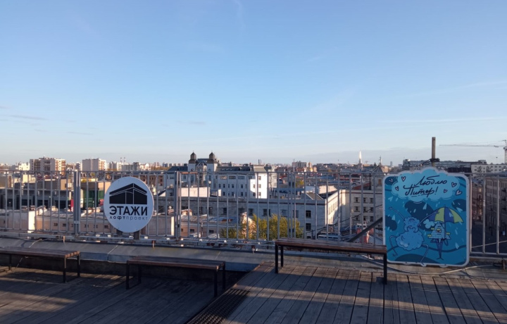 - Лофт-проект «Этажи» — пионер лофт-дизайна на территории бывшего Смольнинского хлебозавода. Здесь выставляются художники, скульпторы и фотографы. Погуляем по крышам с видами на соборы, купола и старую застройку