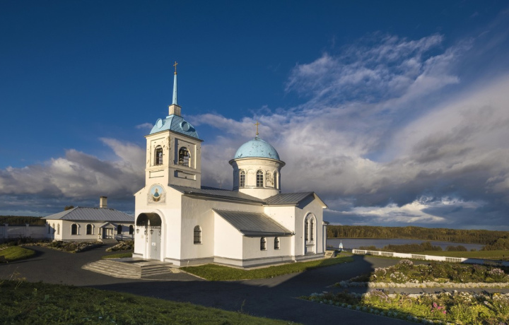 Женская обитель на берегу озера с живописной архитектурой и каскадной лестницей. При желании можно посетить источник.