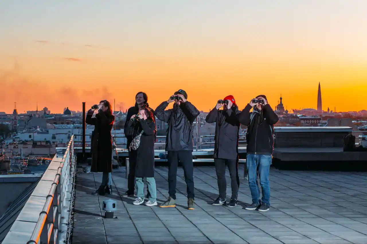 Если вы видели Санкт-Петербург со всех сторон, прошли десятки улиц и заглянули во все музеи, то откройте для себя новый ракурс. Посмотрите на город с высотной крыши, где видно: Исаакиевский собор, Зимний дворец, Казанский собор, шпиль Адмиралтейства и многое другое. Смотровая площадка оборудована специальным проходом и ограждениями. Безопасность подтверждена МЧС и правительством города.