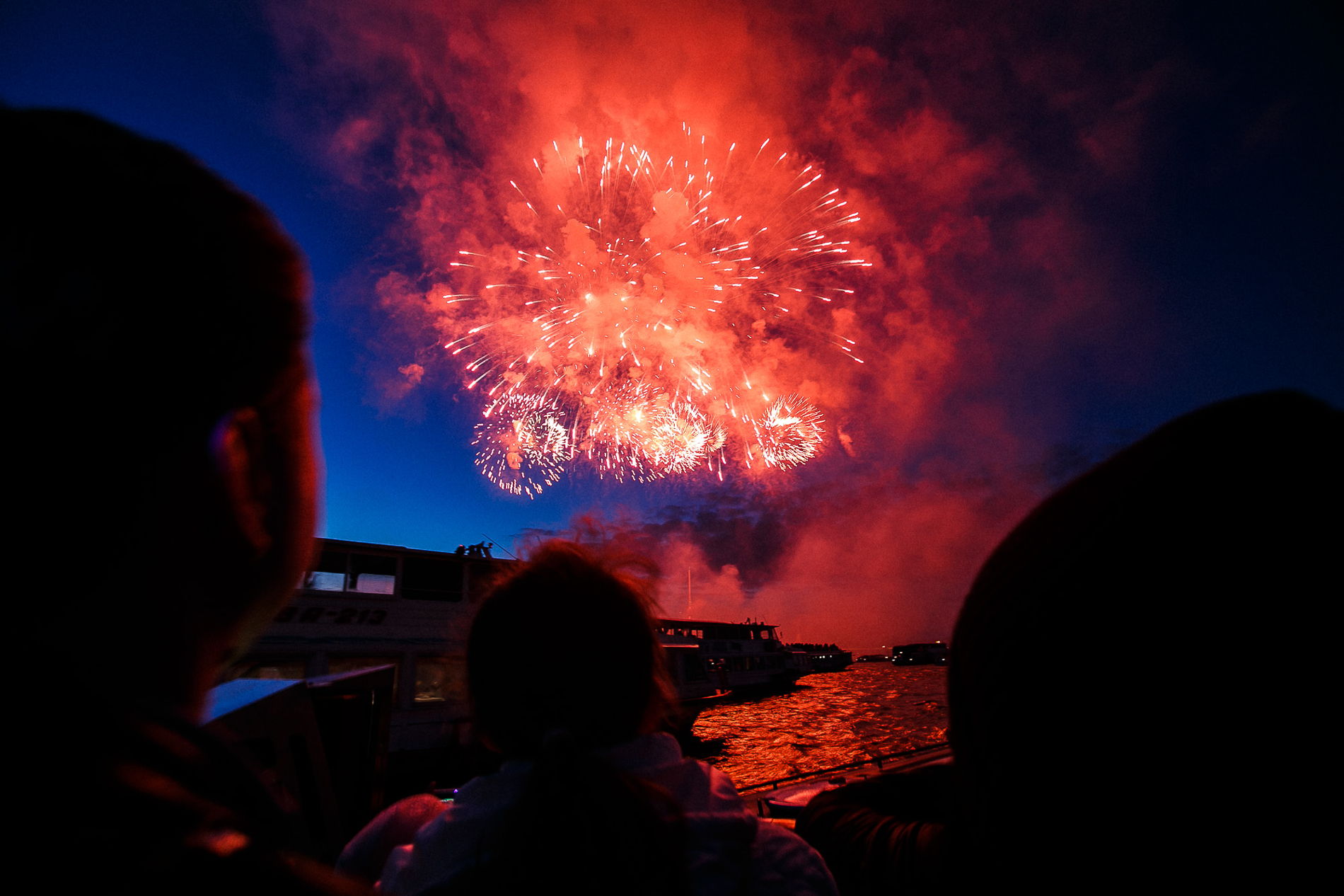 Рейс начинается от причала на Фонтанке и проходит по каналам исторического центра, после чего теплоход выходит в центральную часть Невы — к главным панорамам вечернего Петербурга. Перед началом салюта мы заранее занимаем позицию в акватории, чтобы вы находились в первом ряду и видели фейерверк полностью, без ограничений по обзору. Во время салюта теплоход остаётся на месте, позволяя спокойно наблюдать происходящее и не терять ракурс. После завершения программы теплоход возвращается обратно в каналы и к причалу на Фонтанке.
