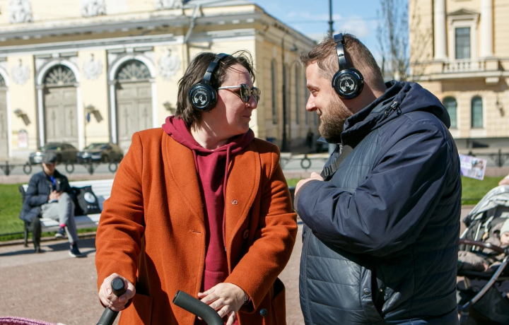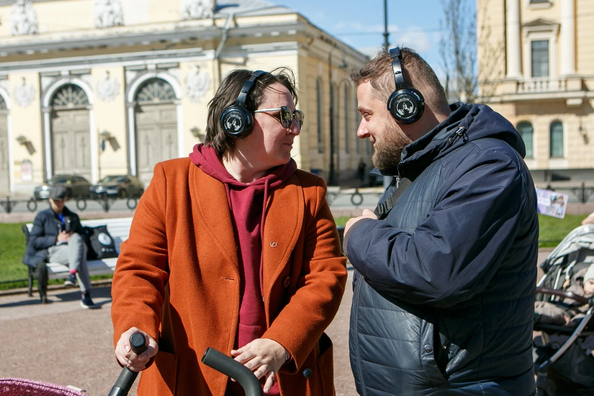 Прогулка начинается на Невском проспекте. Я раздам наушники и пойду впереди, чтобы задать нужный темп. Далее вы: