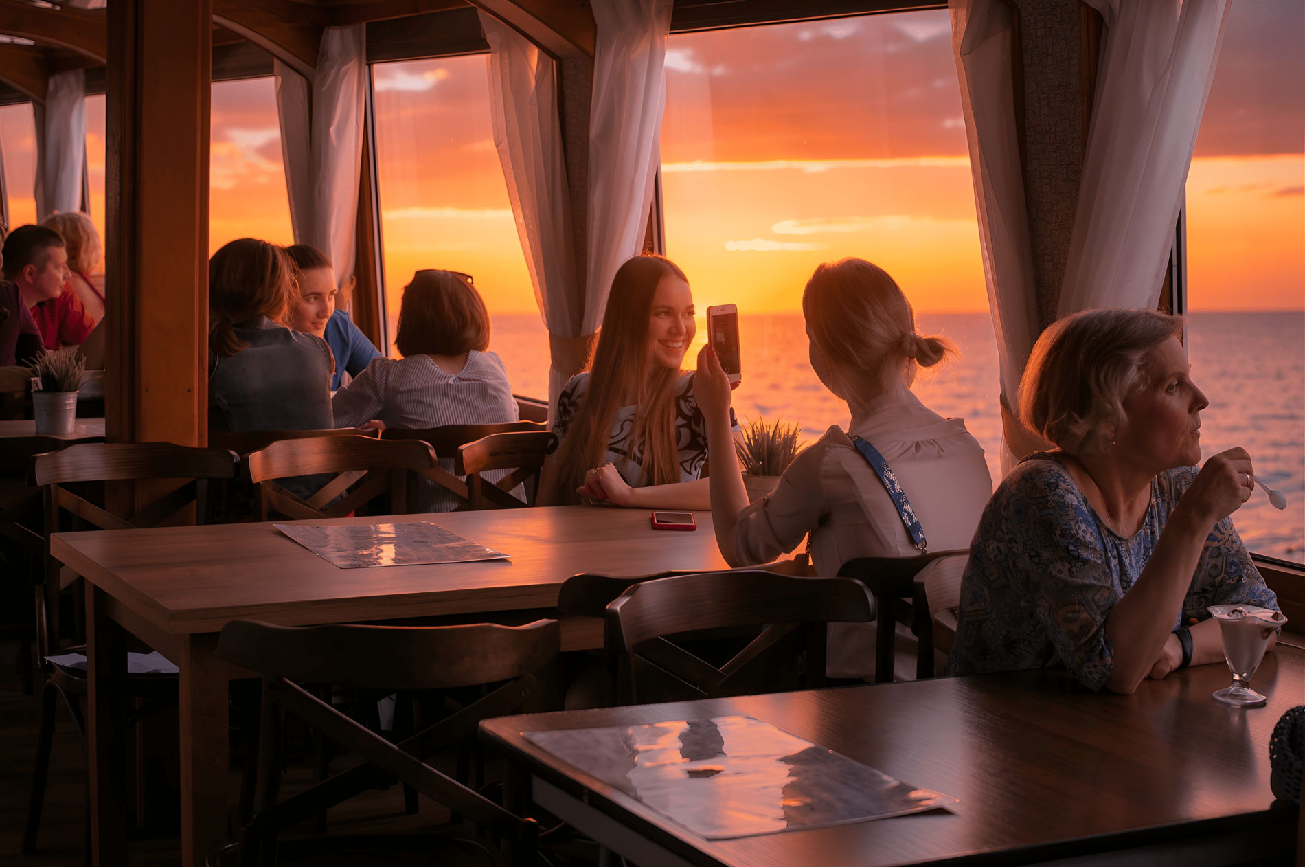 ВВесь вечер вас будет сопровождать музыка. На нижней палубе музыканты исполнят эстрадные хиты, под которые можно потанцевать. На верхней палубе — звучит спокойная фоновая музыка.