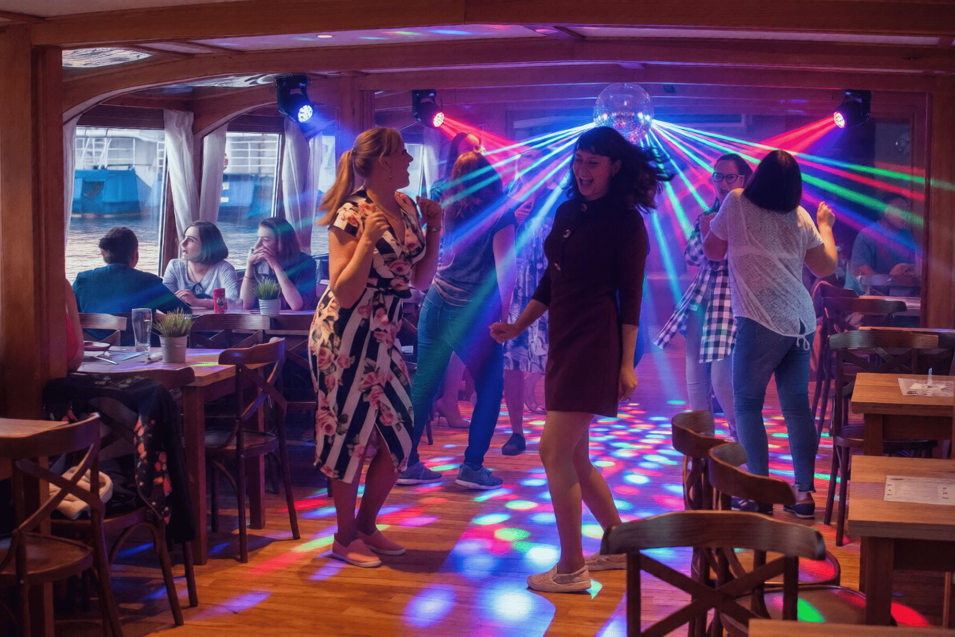 Ночная танцевальная теплоходная прогулка с живой музыкой. На нашем теплоходе две палубы: верхняя, для тех, кому нравится любоваться ночным Петербургом и слушать спокойную музыку. А нижняя — для тех, кто любит танцы и живую музыку. Здесь музыканты исполняют мировые хиты, а на танцполе яркая дискотека!