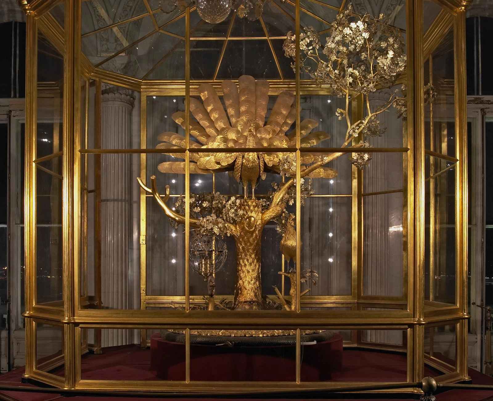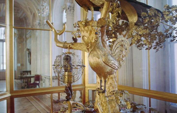 Часы были привезены в Россию в разобранном виде; собрал их и привел в действие замечательный русский механик Иван Кулибин. На сегодняшний день это единственный в мире крупный автомат XVIII века, дошедший до нашего времени без изменений и в действующем состоянии. Взрослые и маленькие путешественники получат массу удовольствия от этой изящно сделанной и остроумной композиции, которой совсем скоро исполниться 250 лет.