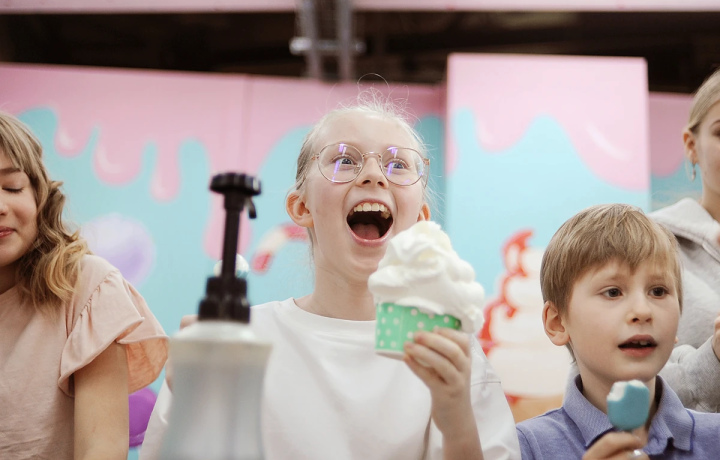 Вас ждёт путешествие в сладкий мир мороженого! Вы увидите, как оно создаётся, а наши весёлые гиды в интерактивной форме расскажут интересные факты о нём. Вы поймаете вдохновение — и сами украсите лакомство!