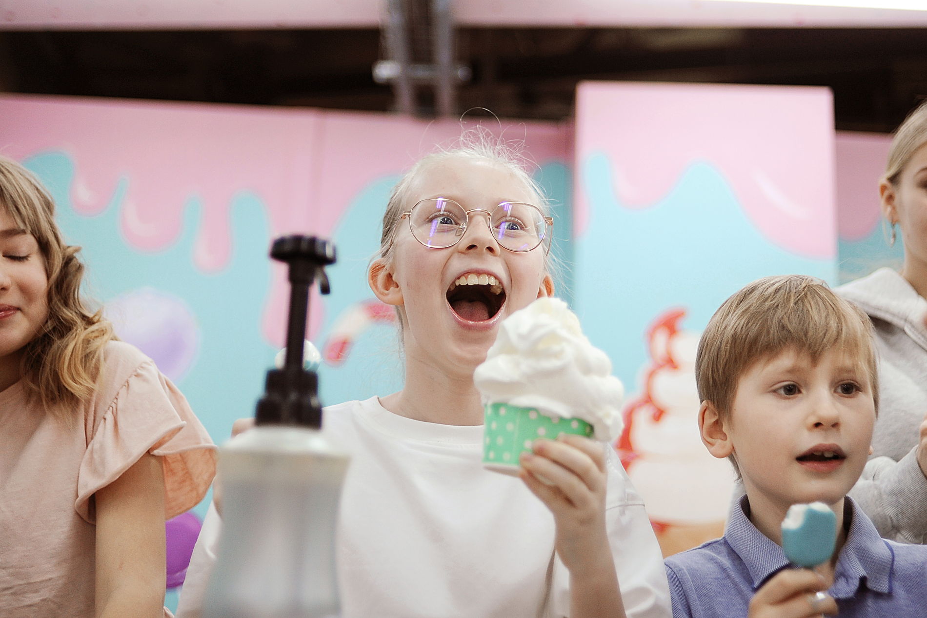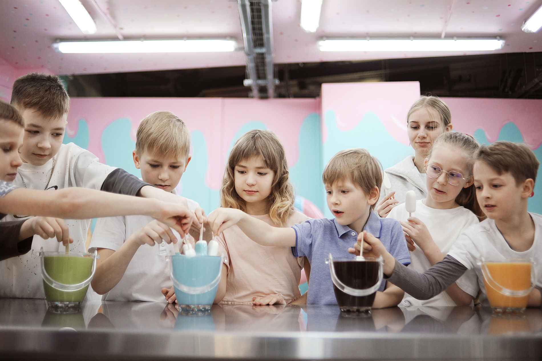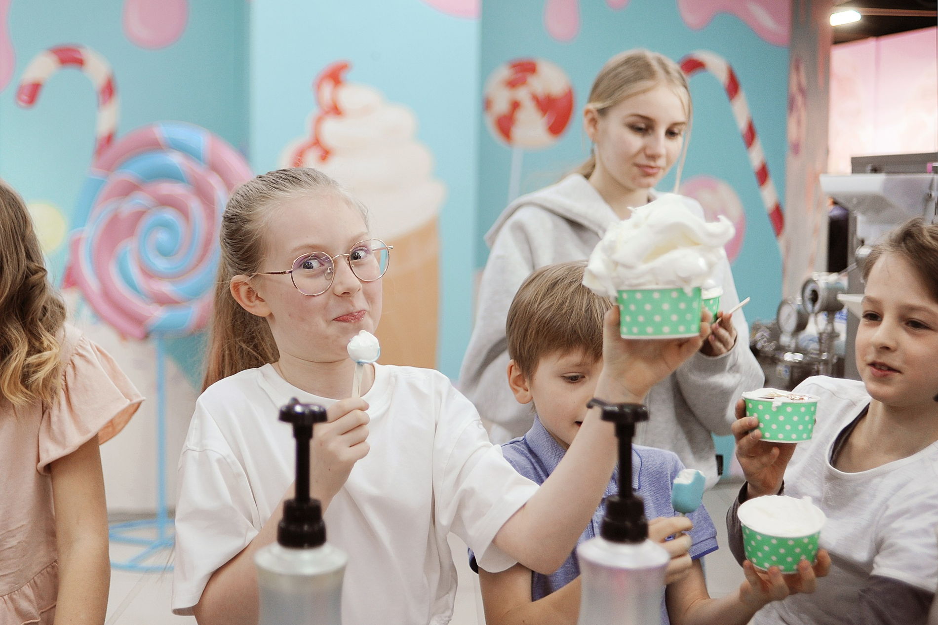 В дегустационном зале вы покроете глазурью эскимо и сахарную трубочку, добавите посыпки, сиропы и любые украшения по вкусу.
