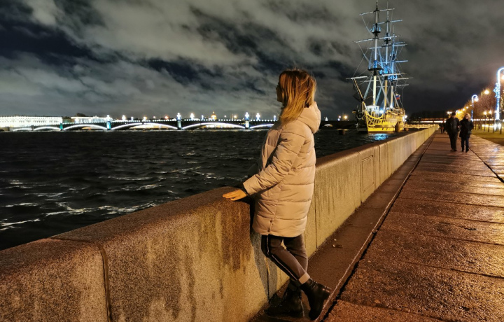 Гораздо менее оживлённый Невский, тихая Дворцовая площадь и набережная Фонтанки, задумчивые соборы, уснувший улицы — без изнуряющих пробок и шума.