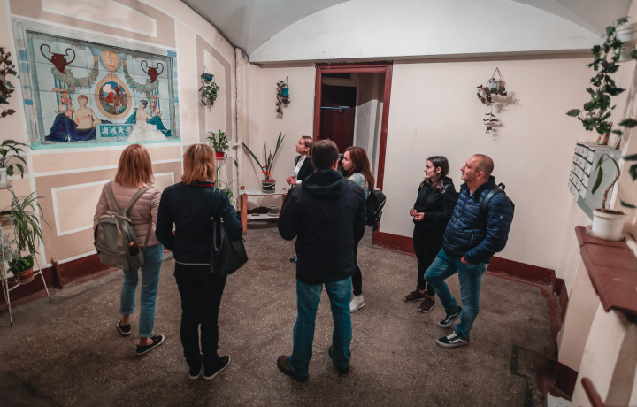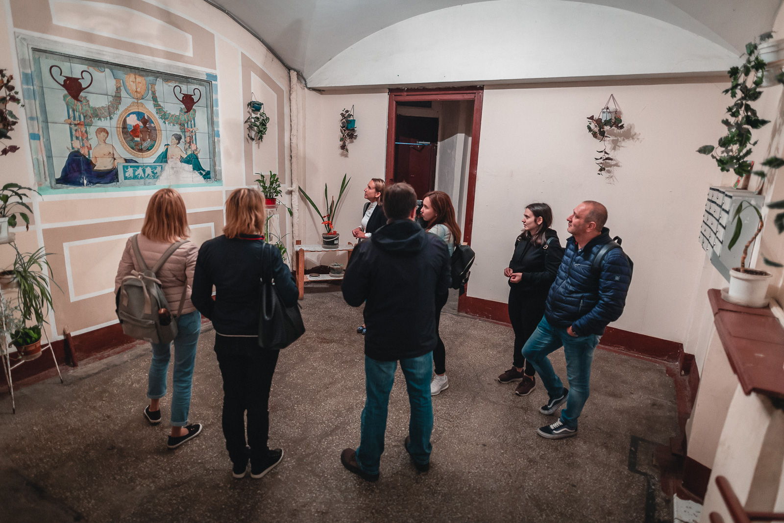 Прогулялись по проходным дворам, посмотрели не парадный Питер, заглянули в парадные с удивительными сюрпризами - где-то из под слоев краски видны исторические засовы на окнах, где-то хорошо сохранившиеся печи и камины. Увидели настоящий двор-колодец, узнали много историй об известных людях, живших в Питере. С Ильёй очень приятно общаться, просто и с юмором рассказывает обо всем. Нам выдали наушники, поэтому было прекрасно слышно все, что рассказывает экскурсовод, даже в шумных местах.