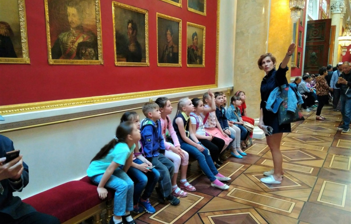 С пышной Иорданской лестницы — традиционного старта экскурсий — начнётся путешествие по самым интересным парадным залам Эрмитажа. Изучать их мы будем в режиме диалога — я обращу внимание детей на детали интерьеров, и они попробуют угадать назначение каждого зала. Вы пройдёте через торжественный Фельдмаршальский зал, полюбуетесь изящным Павильонным, представите, как проходили церемонии в Большом тронном зале — и многое-многое другое. Параллельно я легко и понятно расскажу об истории дворца, об основании музея и о слове «Эрмитаж».