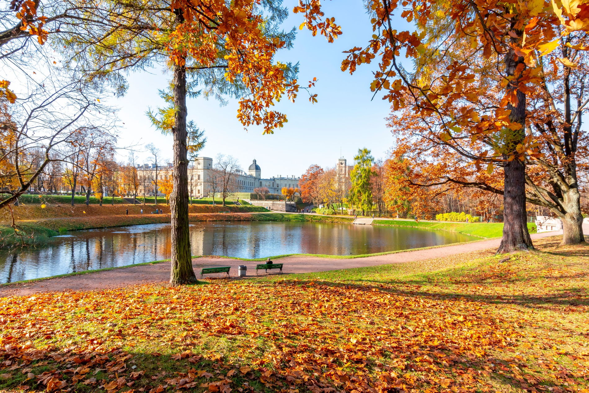 Гатчинский ансамбль создавался для фаворита Екатерины Великой Григория Орлова в благодарность за участие в перевороте, возведшего на престол саму Екатерину. Любитель охоты Орлов получил дворец, напоминающий охотничьи замки европейских феодалов. Окруженная лесами, превращенными в охотничьи угодья, Гатчина подходила для этого идеально. Позже владелец замка сошел с ума, а дворец был отдан сыну императрицы Павлу. И вот уже роты «батушкиной армии» вышагивали по плацу перед дворцом под звуки барабанов и флейты… А охотничьи угодья превратились в романтический английский парк, первый пейзажный парк в России...