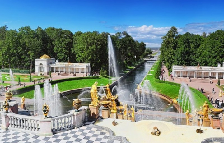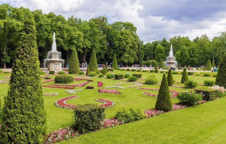 Нижний парк Вы полюбуетесь многочисленными фонтанами и каскадами Нижнего парка, который был создан в начале XVIII века по велению и собственноручным наброскам Петра I в стиле французских регулярных садов с затейливо оформленными газонами, беломраморной и бронзовой золоченой скульптурой. Фонтаны Петергофа – не просто эффектное украшение, а его душа – певучая, радостная, излучающая жизненную энергию, приобщающая к бессмертию красоты. И уже триста лет восторженные гости готовы часами любоваться игрой воды, взлетающей ввысь, падающей на каменные чаши серебряным дождем, извивающейся причудливыми струями, разлетающейся мириадами искрящихся брызг.