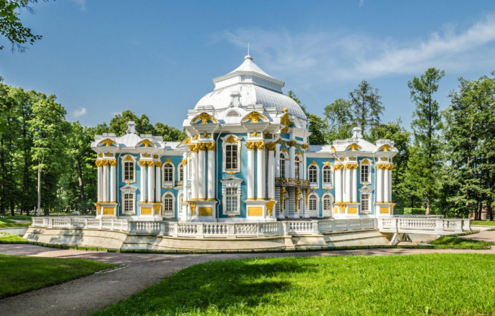 Что увидели? Вначале- дворец, средним темпом по анфиладам. Не все удалось внимательно рассмотреть, скажем, портреты на стенах, но это нормально при том количестве других экскурсантов, что было в это время. Может быть, нужно приходить с самого утра? Затем - пейзажную часть парка вблизи дворца и общий облик Камероновой галереи и павильонов вблизи него. Понравился экскурсовод - Белова Наталия. Грамотно и интеллигентно. Формат экскурсии - 2 часа оказался оптимальным для наших детей от 8 до 14, никто не устал и все были внимательны. И то, что группа наша - это все свои, и нас только 5 человек, замечательно: можно было легко расспрашивать Наталию о том, что интересно именно нам.