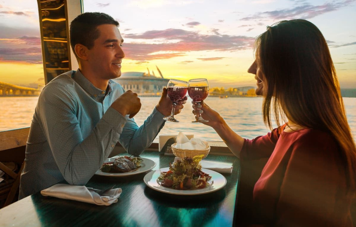 Порадуйте себя и тех, кто вам дорог, водной прогулкой на закате и изысканными блюдами, которые вам подадут в окружении лучших видов. Пройдя через исторический центр, теплоход отправится в Финский залив, и вы полюбуетесь стадионом «Газпром Арена» и «Лахта-центром» в лучах вечернего солнца.