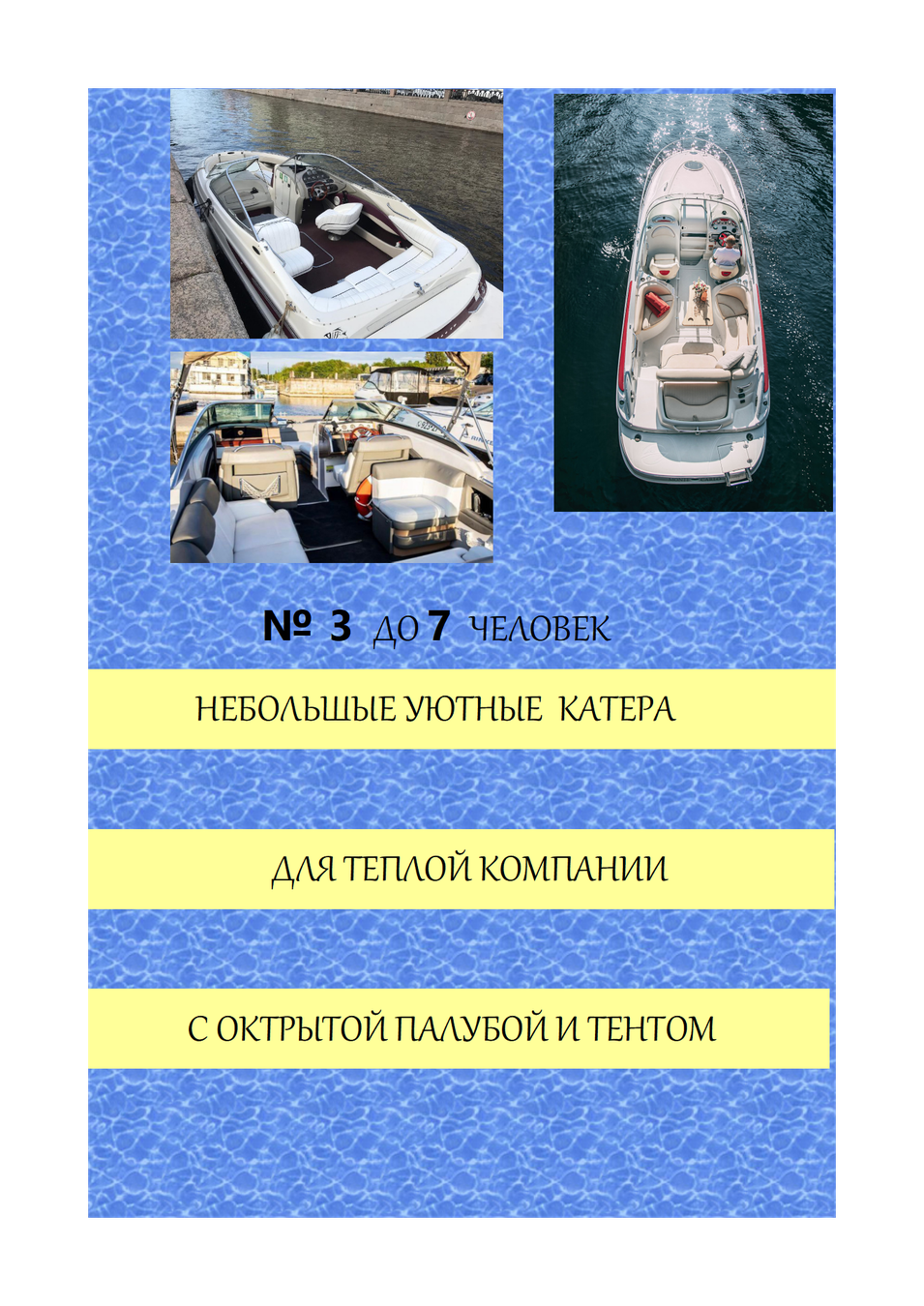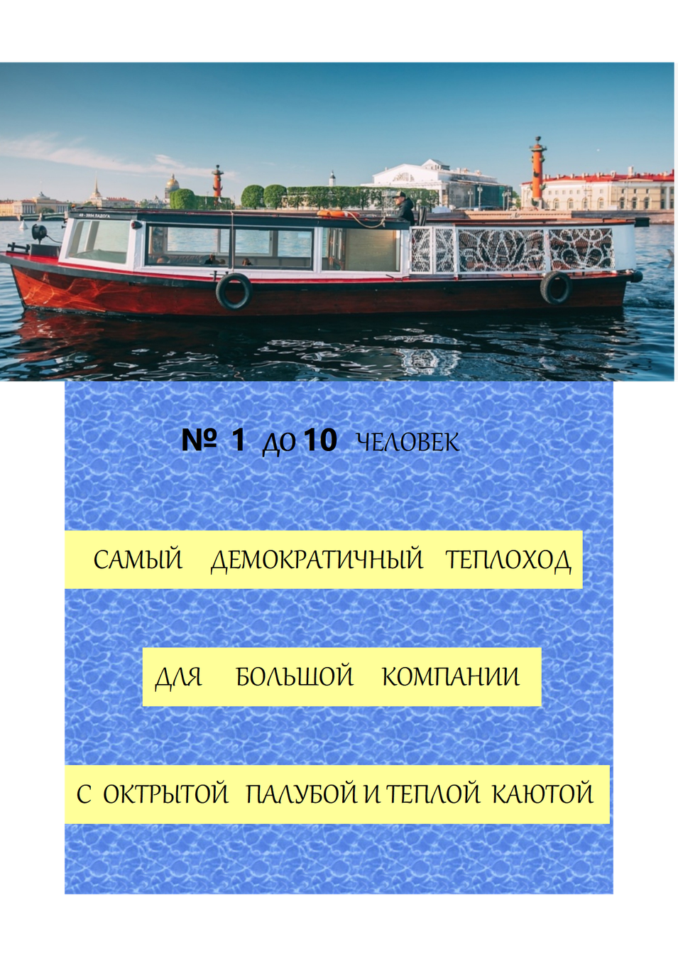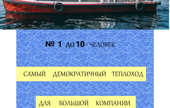 Стоимость зависит от выбранного судна, сезона и дня недели (фото и информация о вместимости каждого в галерее ниже):