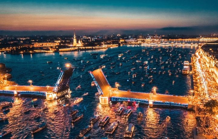 Полюбоваться самым удивительным событием ночи среди вечерних огней Санкт-Петербурга.
