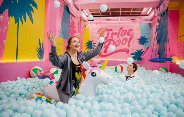 Зайти в гости к великану, нырнуть в огромный бассейн с шариками и снять стресс, разбив тарелки.