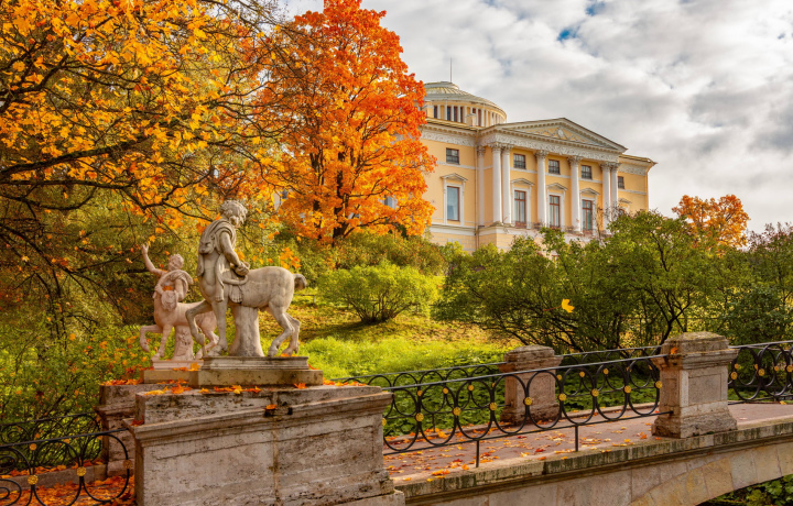 Идеальный вариант, если хочется посмотреть эти два дворца, время года не лето и несколько часов гуляния по паркам не предполагается. У обоих дворцов огромные регулярные парки. Если на дворе осень и погода улыбнется солнцем, то для любителей желтых листев, Павловск с его липовой аллей — идеален для фотографий.